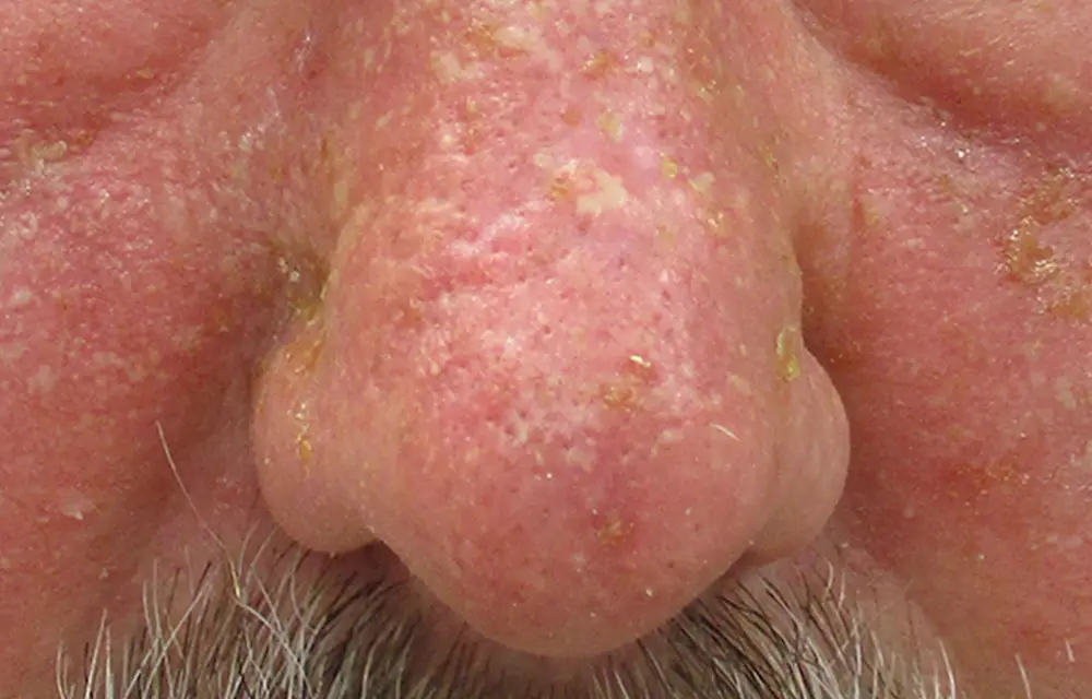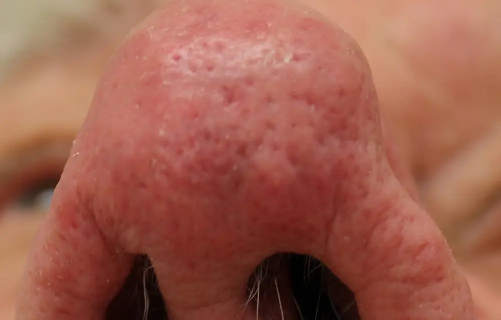 Rhinophyma is a subtype of rosacea marked by gradual thickening of the skin and enlargement of oil glands on the nose. While it was once thought to be linked to alcohol, we now know it results from chronic inflammation, vascular changes, and sebaceous hyperplasia. Left untreated, the condition can progress, leading to disfigurement.