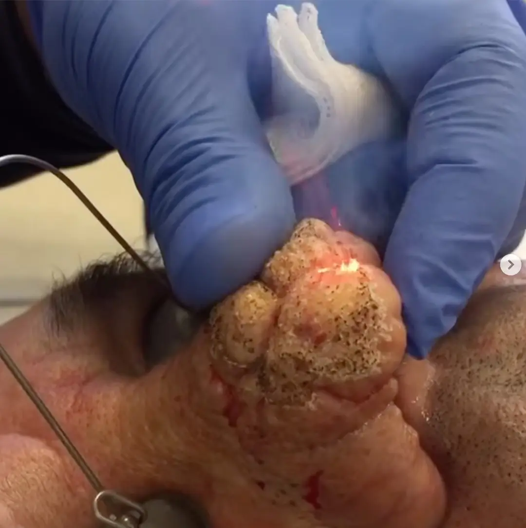 Skin thickening and texture changes, often on the nose (rhinophyma).