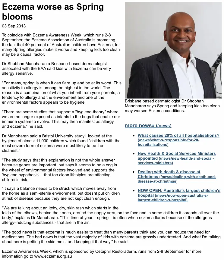 Article originally published here: http://www.hospitalandagedcare.com.au/news/eczema-worse-as-spring-blooms